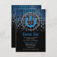 Blue, black, and grey (grey) raining pixel gamer or video game Bar Mitzvah reception party insert card.
