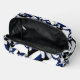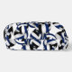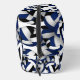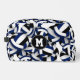 This volleyball themed Dopp kit features a random pattern of varied size blue, black & white volleyballs turned every which way on a white background - customize with the volleyball player's monogram - by katz_d_zynes