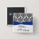 This black and white damask with a PRINTED royal blue ribbon and jewel buckle Mother of the Bride button matches the wedding invitation shown below. The text is customizable and so is the shape and size of the button. ****PLEASE note that if you change the shape to the round button that text may get cut off. It will print as it appears on your monitor, and you must allow addequate space around the edges. If you need anything changed, please email niteowlstudio@gmail.com.