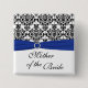 Blue Black White Damask Mother of the Bride Pin