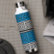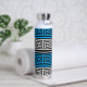Blue Black White Greek Key Fret Pattern Design Water Bottle