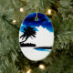 Blue Black White palm Tree Silhouette Ceramic Ornament