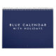 It's 12 months (January - December) blank blue calendar with holidays (United States events and holidays), white wire and changeable text on front page.