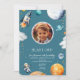 Blue Blast Off Photo Space Theme Kids Birthday Invitation