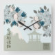 Blue blossom roses Oriental floral landscape art Square Wall Clock