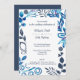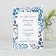 Blue, Bluish Grey Floral Pattern Frame Wedding Invitation