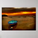 blue boat orange sky poster