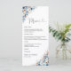 Blue Boho Floral Mariage Ceremony Menu. Cette invitation à la douche de mariage élégante et élégante présente de magnifiques fleurs de Boho bleu peintes à la main. Trouvez les articles correspondants dans la collection Florale Boho Bleu.