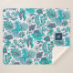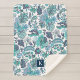 Blue Boho Vintage Floral Monogram Sherpa Blanket