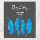 Cute feather design of blue bird feathers in watercolor. Arty boho design in grey and blu.e