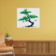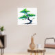 a traditional watercolour illustration of a bonsai tree in green and blue colors as a poster print