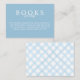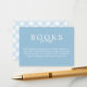 Invite guests to help build your baby's first library with this charming blue "Books for Baby" request card. Featuring a classic serif font on a soft blue background and a full watercolor gingham pattern on the back, it's the perfect addition to your boy baby shower suite.