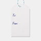 Blue boomerangs gift tag. Background colour and text can be customized.