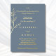Celebrate your faith and love with this personalized, minimalist wedding invitation, designed to reflect simplicity, elegance, and meaning. This design features a graceful line drawing of a botanical olive branch with olives and leaves — a timeless symbol of peace and unity. The illustration, along with elegant calligraphy script and typography fonts, is pressed in real gold foil for a touch of refined luxury. Set against a stylish dusty blue background, this invitation includes the couple’s monogram and a treasured Bible verse, beautifully woven into the design to reflect the sacred foundation of your union. Perfect for couples who cherish both minimalist design and heartfelt faith, this invitation is a serene and sophisticated choice for a Christ-centered wedding celebration.