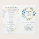 This elegant folded wedding program features soft blue and gold botanical illustrations, a modern vertical layout, and space for both the wedding ceremony and wedding party details. Fully editable to match your names, date, and order of events. Coordinates with the full Blue Botanical Wedding Collection.