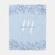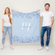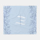 Personalized blankets feature navy blue botanical leaves with big white monogram and name on light blue background, Great personalized gifts.