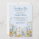 Blue Wildflower Bridal Shower Invitation with Yellow Flowers. Celebrate the bride to be with this nature inspired design, perfect for gatherings from spring through autumn. The phrase "something blue before I do" graces the top of the invitation.