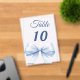 Personalize and your table numbers one by one. A clear background decorated with a large light blue colored bow.