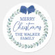 Blue Bow-Adorned Wreath Merry Christmas Classic Round Sticker