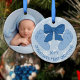 Blue Bow Baby Feet Photo Son's First Christmas Ceramic Ornament