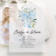 💙🌿 Blue Bow Baby in Bloom Floral Boy Baby Shower Vellum Invitations 🎀✨