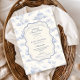 A sweet vintage-inspired design featuring delicate blue bows, soft striped detailing, and charming blueberry garden illustrations. Toile-style artwork with adorable animals and fruit baskets creates a classic storybook feel in a soft powder blue palette. The ornate central frame adds elegance while keeping the overall look light, refined, and timeless. Perfect for a baby shower with a gentle garden theme and a touch of traditional charm.