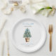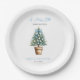 Blue Bow Christmas Tree Merry Little Baby Shower Paper Plate