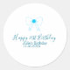 Blue bow happy 21st birthday name date girlstylish classic round sticker