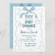 Blue Bow Modern Illustrated Boy Baby Shower Invitation