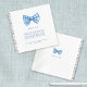 Blue Bow Tie Baby Shower Guest Book. A cute gingham bow tie is above modern writing which you can easily personalise for your baby boy shower.