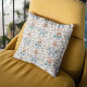 Boho and rustic pillow featuring hand drawn illustration of bows and flowers in blue colours.