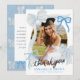 This coquette graduation thank you card features your photo surrounded by a hand-drawn blue bows. The reverse side features a pale blue background with a bow pattern. Personalize it for your needs. You can find matching products at my store.