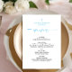 Celebrate your baby boy's baptism with our charming Baby Boy Baptism Menu, featuring elegant blue lettering and a delicate blue cross design. This menu adds a touch of grace and sophistication to your celebration, setting the perfect tone for this special occasion.
