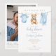 This cute baby shower invitation features a pretty blue boy baby clothesline and can be personalized with your details set in stylish typography. The reverse features your special photo and a registry QR code. Designed by Thisisnotme©