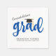 Graduation party napkins for your class of 2018 graduate. Blue script "grad" with graduation cap design party napkins, customize with the name of the student, the name of their school and year.