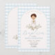 Blue Boy Modern Greenery Baptism Gingham Invitation