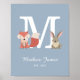 Blue Boy Woodland Animals Monogram Nursery Poster