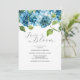 Enhance your bridal shower with our floral invitations, featuring a border of hand-painted watercolor hydrangeas in shades of blue. The trendy script typography "Love is in Bloom" adds a touch of modern elegance, while your event details are displayed in a chic sans serif and hand-lettered script type. The reverse side of the card features a photo of the bride to be. Perfect for garden-themed luncheons or brunch and bubbly bridal showers. Explore the matching theme by Victoria Grigaliunas at https://www.zazzle.com/collections/blue_petals_and_prosecco_bridal_shower-119317453494662805