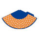 This festive design features slender orange tiled ovals outlined with vertical red accents in between. The design is capped off with a deep blue tip.