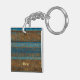 Horizontal stripes in shades of blue, interspersed with horizontal blocks of bronze and old gold, giving this keychain a weathered, oxidized, grunge appearance. Great for a little stocking stuffer!