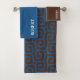 Blue &Brown Abstract Pattern Custom Name Bath Towel Set