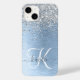 Blue Brushed Metal Silver Glitter Monogram Name Case-Mate iPhone Case