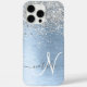 Blue Brushed Metal Silver Glitter Monogram Name Case-Mate iPhone Case