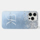 Easily personalize this trendy chic phone case design featuring pretty silver sparkling glitter on a blue brushed metallic background.