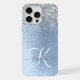Blue Brushed Metal Silver Glitter Monogram Name iPhone Case