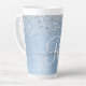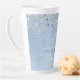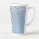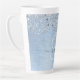 Easily personalize this trendy chic latte mug design featuring pretty silver sparkling glitter on a blue brushed metallic background.