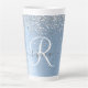 Blue Brushed Metal Silver Glitter Monogram Name Latte Mug
