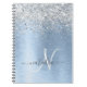 Blue Brushed Metal Silver Glitter Monogram Name Notebook