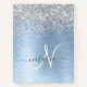 Blue Brushed Metal Silver Glitter Monogram Name Notebook