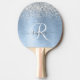 Easily personalize this trendy chic ping pong paddle design featuring pretty silver sparkling glitter on a blue brushed metallic background.